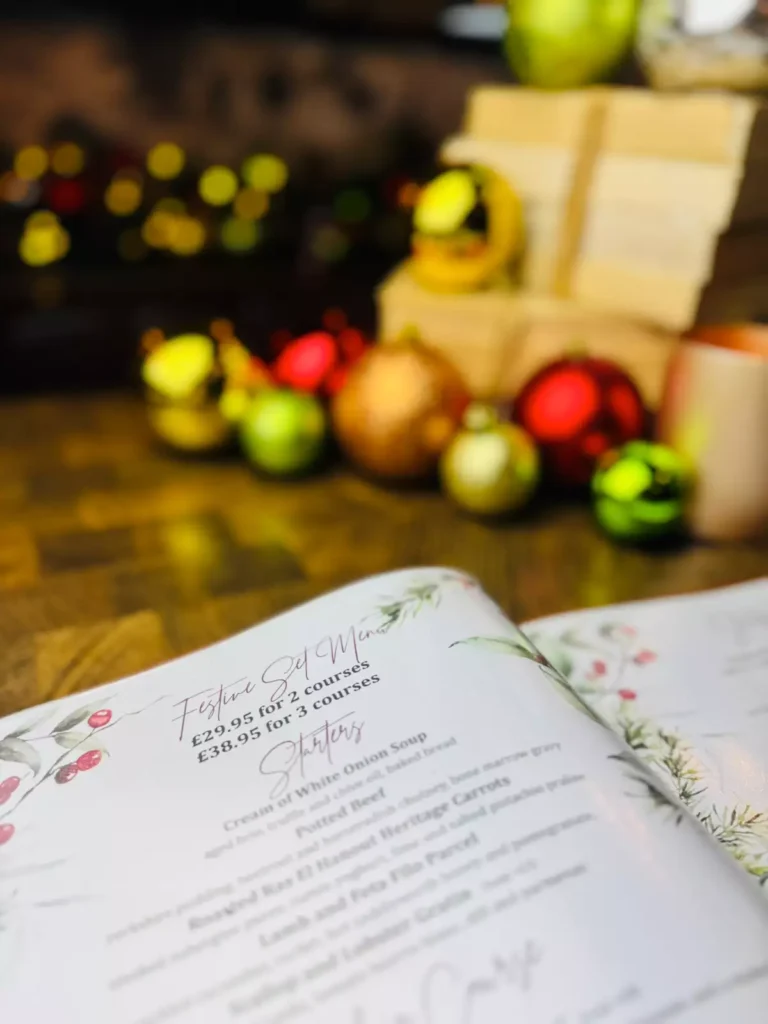 Celebrate the season with a festive menu that blends much-loved classics with a few modern twists. From comforting starters to indulgent puddings, every dish is prepared with the finest ingredients and a generous measure of Christmas cheer.